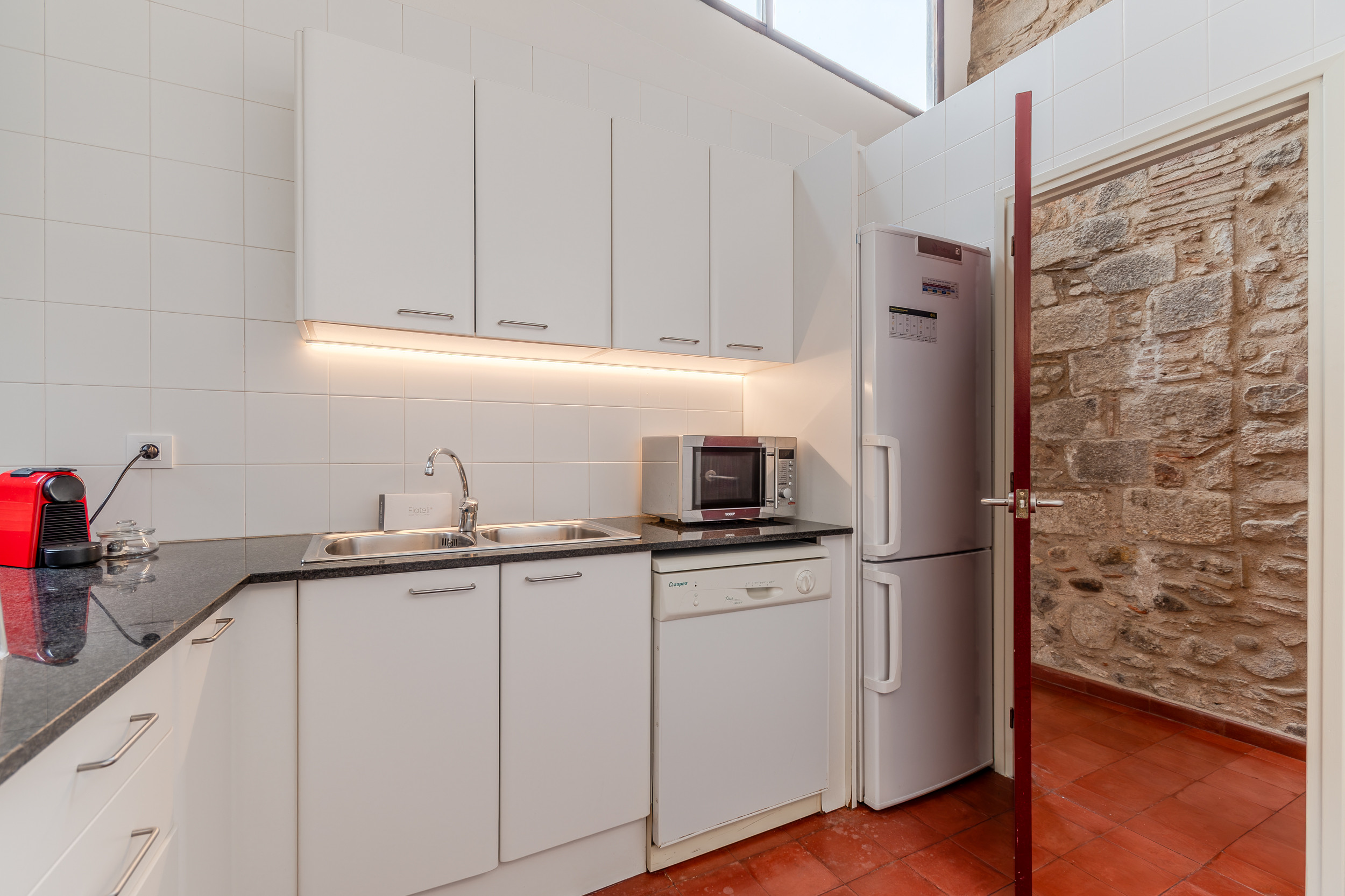 La cocina esta totalmente equipada con microondas, cafetera, nevera y fogones.