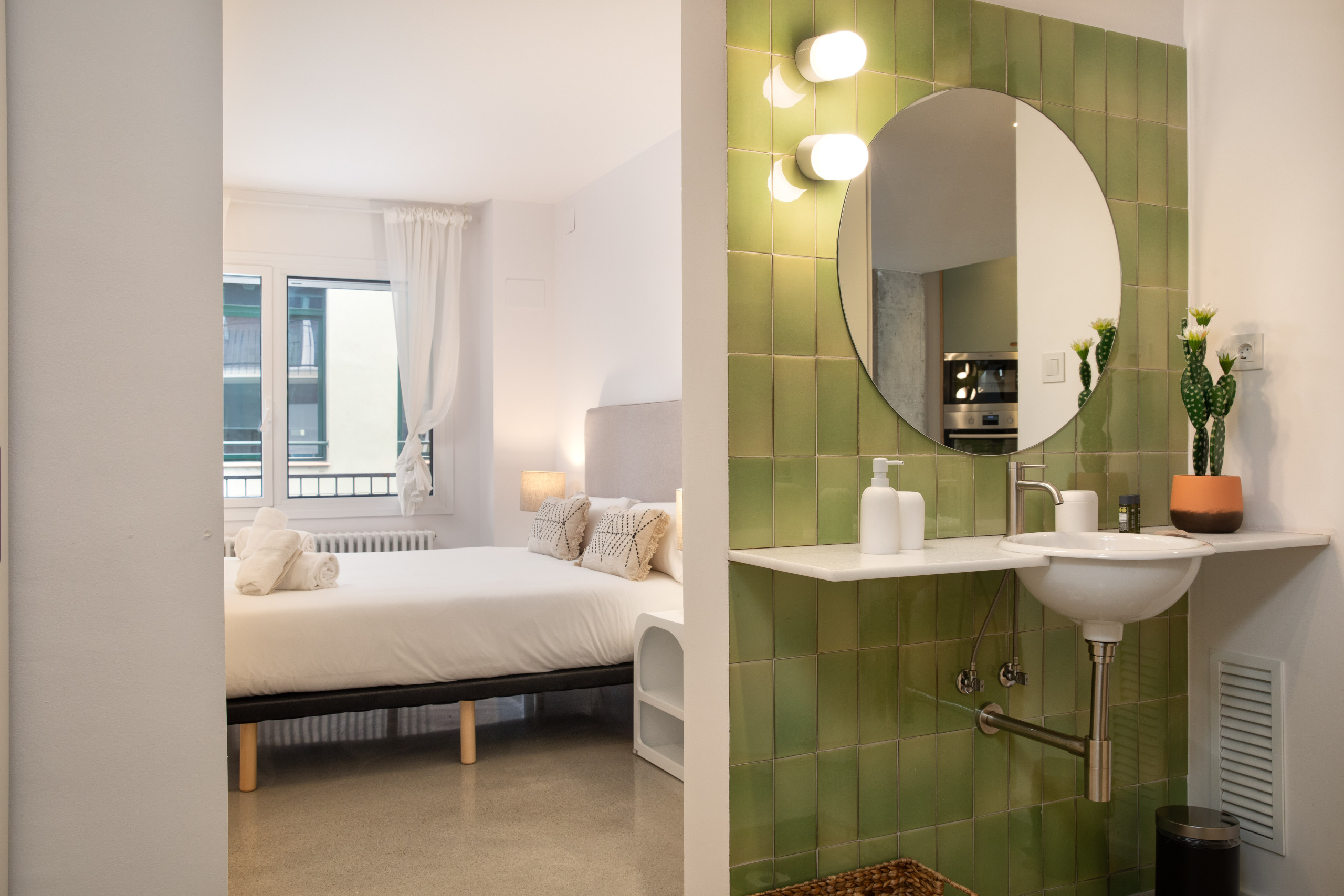 Este bonito estudio tiene todo lo necesario para una estancia inolvidable en Girona! Cuenta con una agradable cama doble separada de la zona de estar y cocina. En dicha zona hay un sofá-cama doble muy comodo. La capacidad total del alojamiento es de 4 personas.