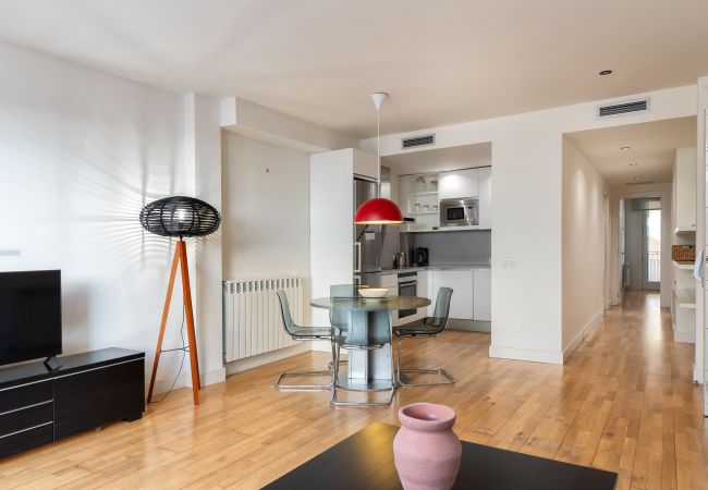 El apartamento se sitúa en la primera planta de un edificio con ascensor, que tiene una situación inmejorable en el centro de la cuidad. Destaca su amplia y fantástica terraza de uso privado. Ofrece un espacio optimizado donde se combina la funcionalidad y la modernidad, donde encontramos una cocina americana completamente equipada y el salón-comedor con acceso a la terraza. El apartamento puede alojar a 4 personas muy cómodamente puesto que hay una habitación de matrimonio y una habitación con cama nido. La habitación de matrimonio muy amplia tiene un cuarto de baño en suite. Encontramos un segundo baño con ducha.