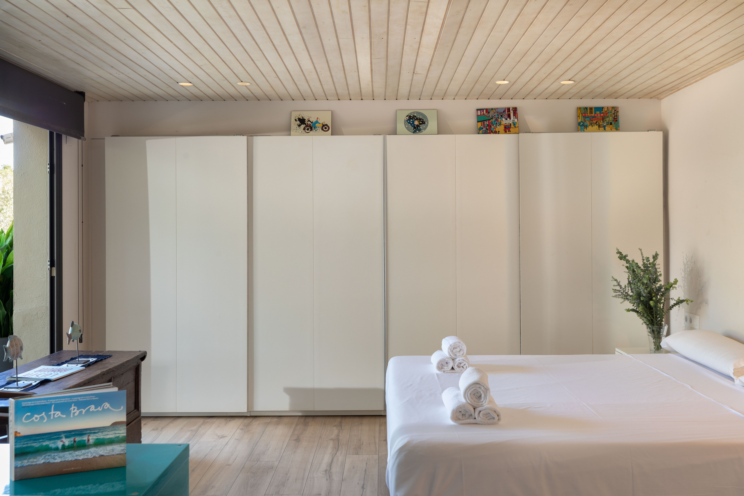 Hi ha dues habitacions dobles, una amb llit de matrimoni i una altra amb dos llits individuals estil "niu" que es poden ajuntar o separar.