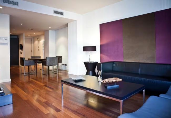 It is located in the 'Eixample modernista' district and 5 minutes from the famous Ramblas and Montjuic (Olympic stadium and natural park). It is also close to the famous 'Moritz' beer factory, native to Barcelona. The neighbourhood is full of modern and cosy restaurants and bars with terraces and gardens.