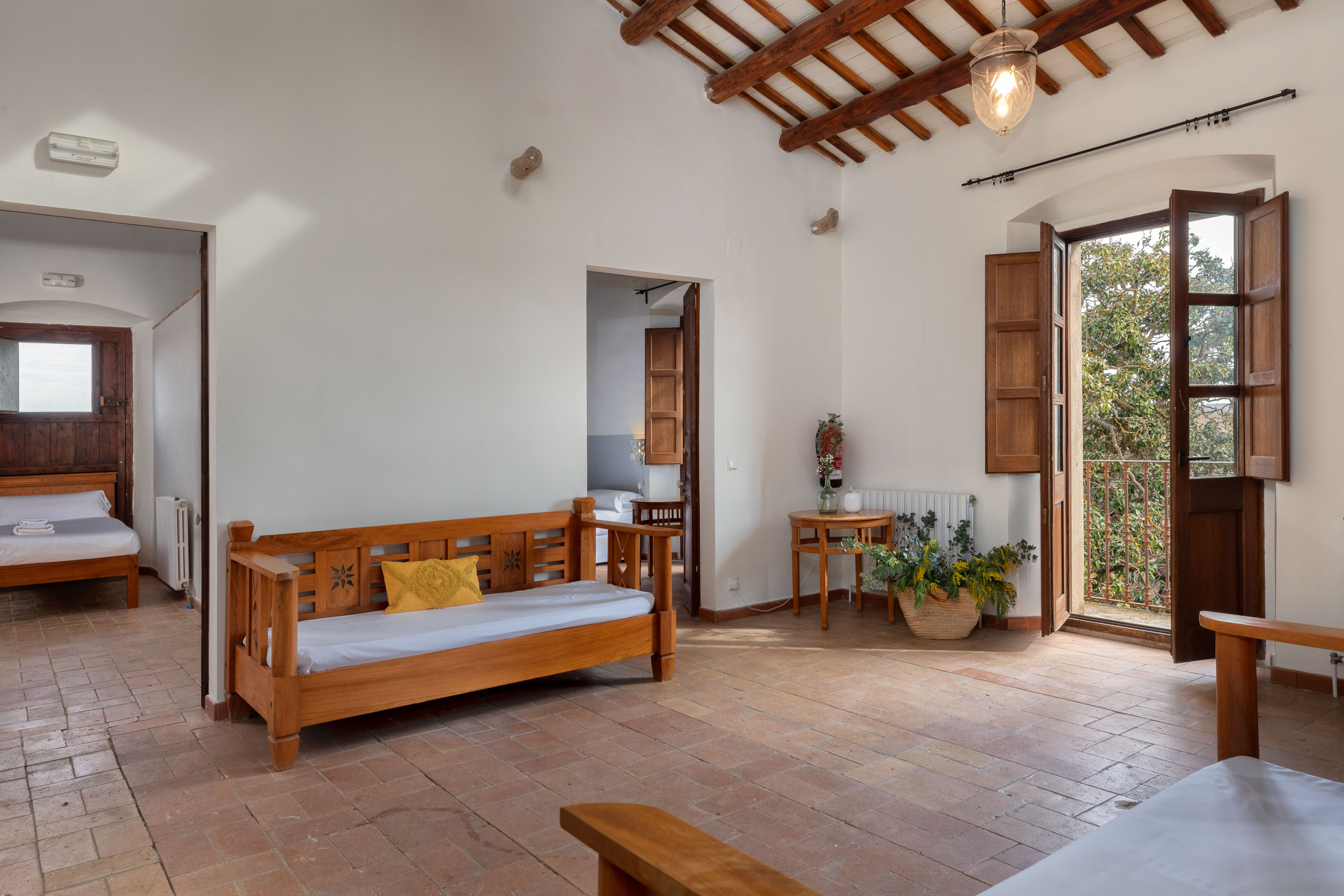 The accommodation is divided into a large 8-bedroom house and a 4-bedroom duplex. Together they form the Can Tallada complex. The large house is distributed as follows: