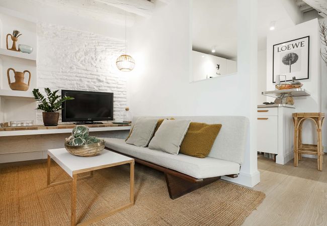 Appartamento romantico nel cuore di Barcellona. Dispone di un'ampia camera con bagno privato con vasca, un secondo bagno con doccia, un ampio soggiorno, una camera da letto/zona lavoro, una cucina a vista con lavatrice e lavastoviglie e tutti i comfort.
