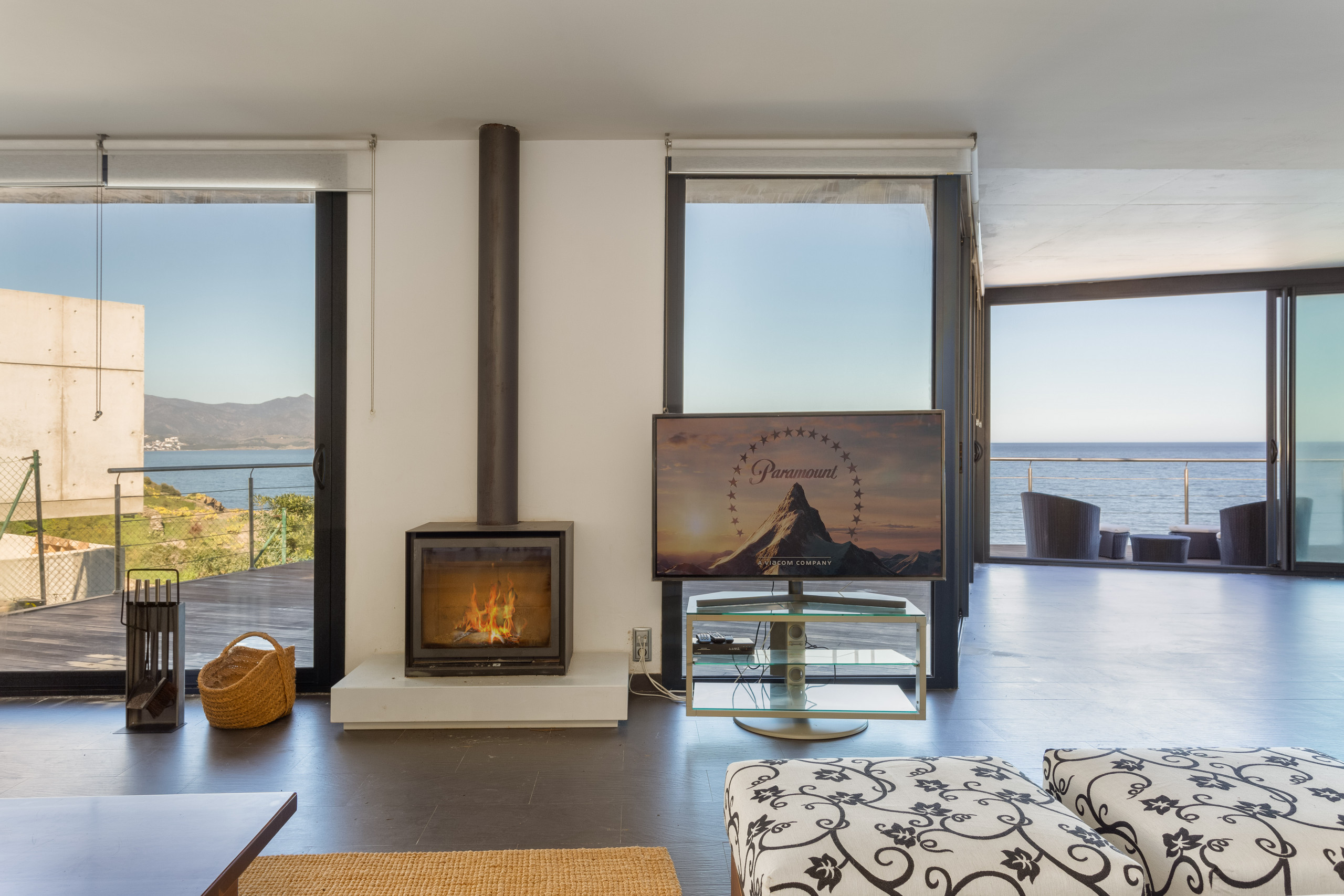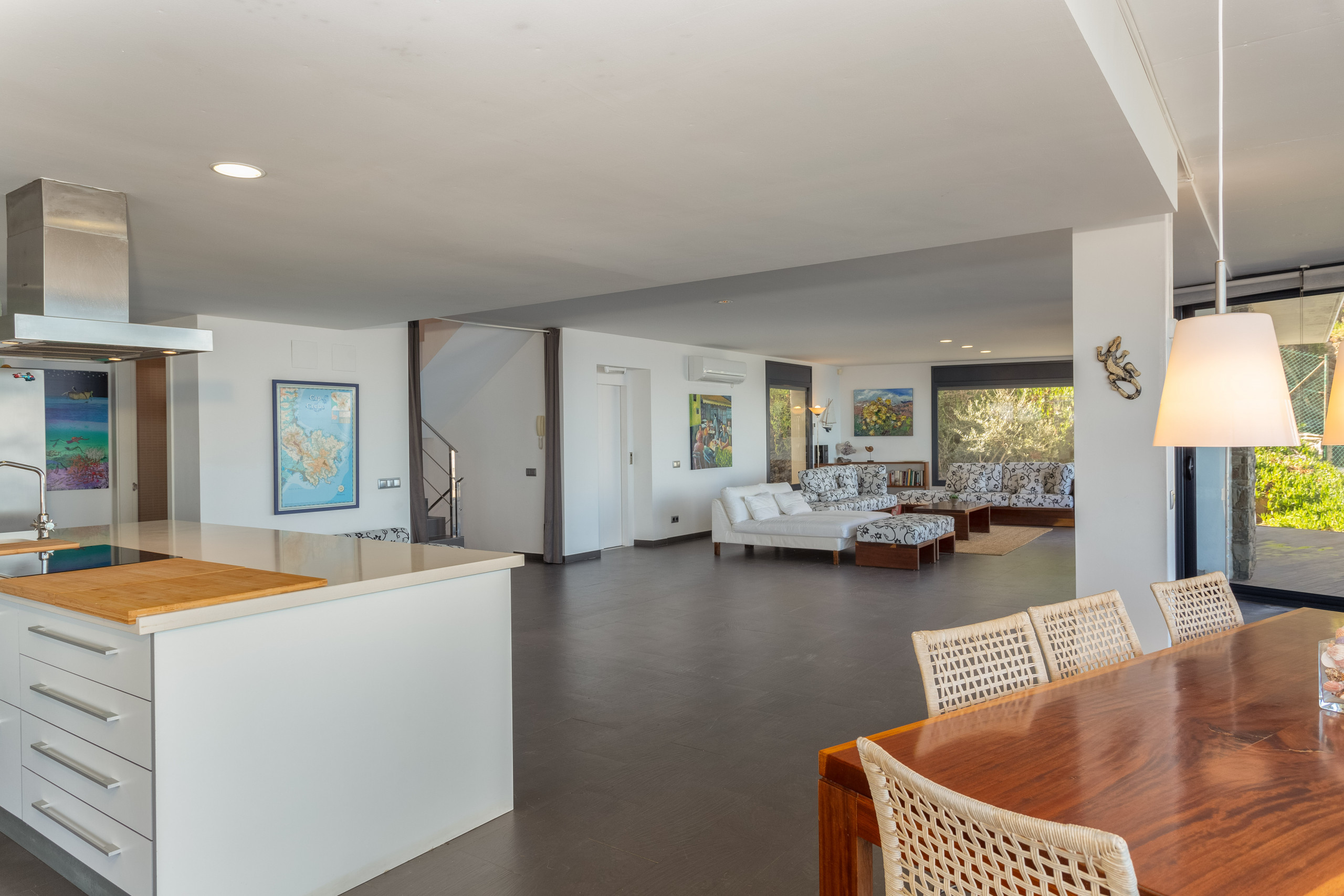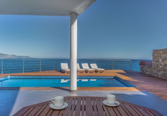 Bellissima abitazione distribuita su due piani collegati tramite ascensore dal garage. Al piano nobile ci accoglie un imponente soggiorno, con una cucina a vista completa e pareti in vetro con solo il mare come vista meravigliosa. Ampio divano, falò, tavolo per tutti i commensali e tutto il necessario per godersi comodamente il soggiorno. Le finestre danno accesso diretto all'area esterna, un'accogliente terrazza con vista, dotata di due zone pranzo, una più appartata, ideale per la colazione e un'altra con un grande tavolo per più commensali che ci invita a condividere piacevoli cene con magnifici tramonti . Una spettacolare piscina con lettini e zona divani.